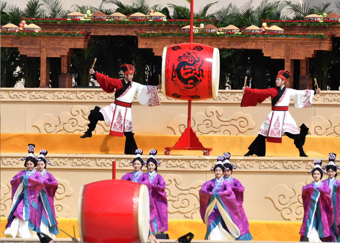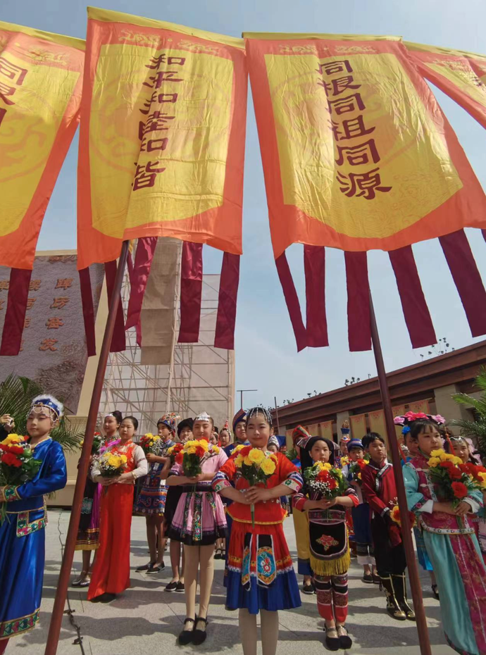 南門廣場上,龍騰虎躍,鼓聲震天。來自中原大地的特色民俗表演升騰鼎沸,為今年的拜祖大典奏響吉慶的序章。