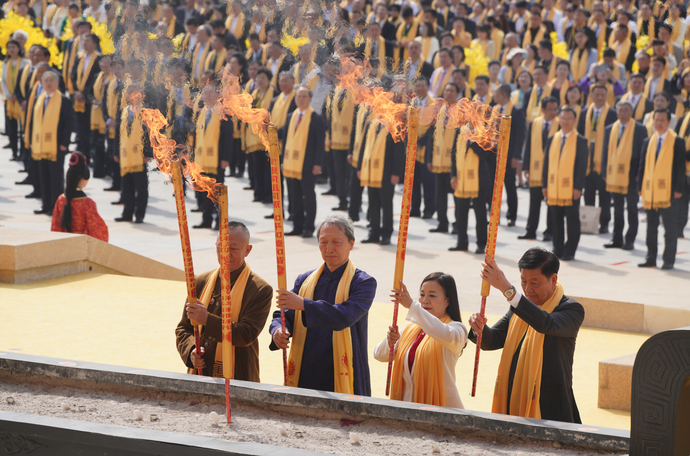 恭讀拜文。“粵稽遐古,天地洪荒,具茨綿綿,我祖是降……”主拜人登上拜祖臺,以全球華人之名,肅手恭頌。