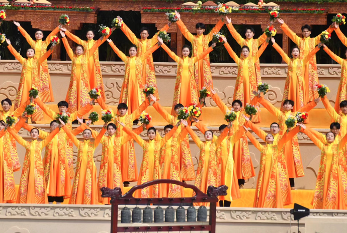 高唱頌歌。來自香港地區的鐘鎮濤、臺灣地區的朱孝天和澳門地區的麥嘉欣以及內地的曹芙嘉,兩岸四地同歌《黃帝頌》,共聚家國情。