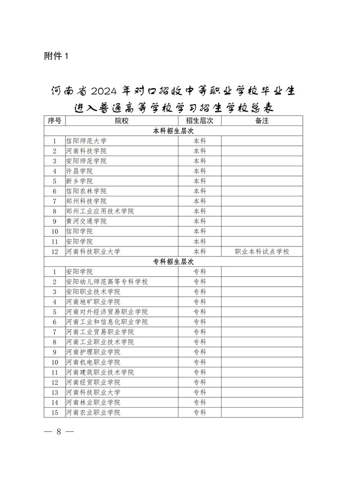 本專科招生專業均須是經審批或備案設置的專業,名稱和類屬應符合教育部現行專業目錄要求,且在今年我省對口招生專業對照表中的“報考高校專業名稱”范圍之內。具有我省中等職業學校學籍的2024年應屆中職畢業生,均可報名參加此次對口招生考試,考生所學專業與報考專業應與河南省2024年對口招生專業對照表一致。非豫戶籍一年制中職畢業生(隨遷子女除外)不得參加我省對口招生。