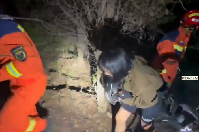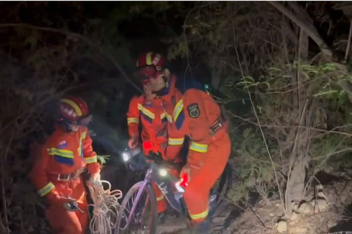 女子被困區域系未開發路段,道路崎嶇且信號不好,消防救援人員連續搜尋40分鐘,最終在一處洼地找到了女子,之后詢問女子身體并無不適后,迅速幫助搬運自行車,幫助女子重新回到安全區域。