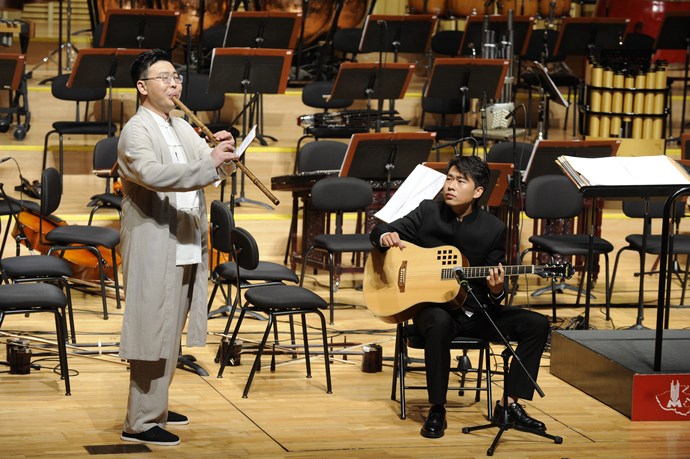 由于文龍與馬振堃聯袂演奏的簫與吉他的創新結合跨界演繹《飛鴻》,展現中國傳統樂器與現代樂器的完美碰撞,讓人耳目一新。民族管弦樂《龍舞》氣勢恢宏,最讓人難忘的是,其中有一段不同類型打擊樂的輪番演奏,充滿激情與力量,渲染了濃郁的節日氣氛。《在水一方》充滿了溫柔與深情,沉穩的大提琴和悠揚的二胡交織纏綿,盡顯浪漫。