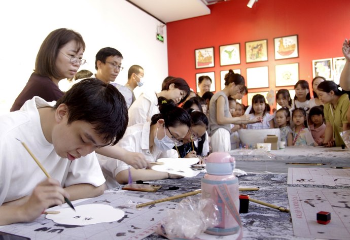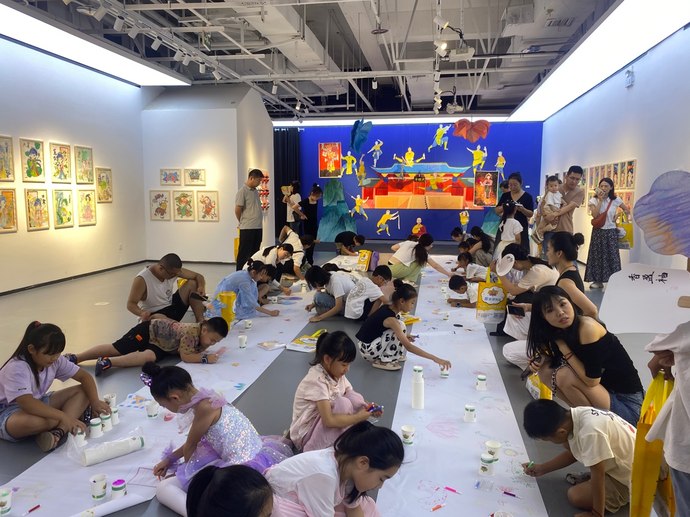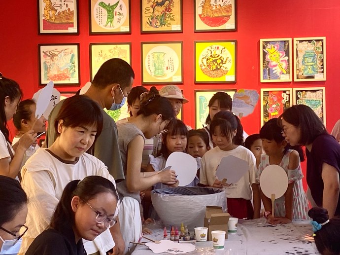 活動現場,孩子們進行了傳統漆扇的制作及百米長卷的集體創作,還在星空奇愿燈上留下自己滿滿的祝福,家長與孩子們共同參與體驗了一場別開生面的暑期藝術之旅。