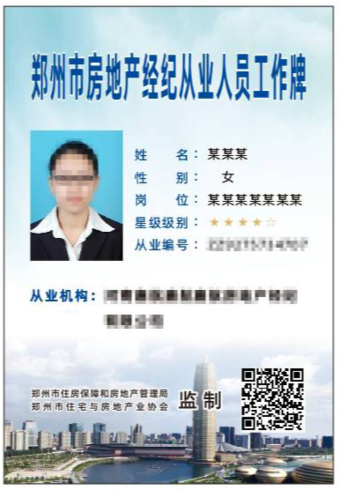 房地產經紀從業人員登記信息可通過手機微信掃描其佩戴的由鄭州市住房保障和房地產管理局、鄭州市住宅與房地產業協會聯合監制的工作牌二維碼查看,如掃描結果與工作牌信息不一致或無信息顯示,則該工作牌為無效,請慎重選擇其提供經紀服務。