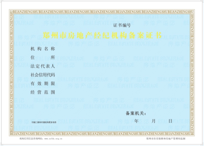 三、房地產經紀機構備案信息可通過手機微信掃描其備案證書二維碼查看,如掃描結果與備案證書信息不一致或無信息顯示,則該備案證書無效,請慎重選擇。房地產經紀機構信用信息可通過查看其信用等級證書或登錄:鄭州市住宅與房地產業協會(www.zzfdc.org.cn)網站→企業信用欄目查詢。