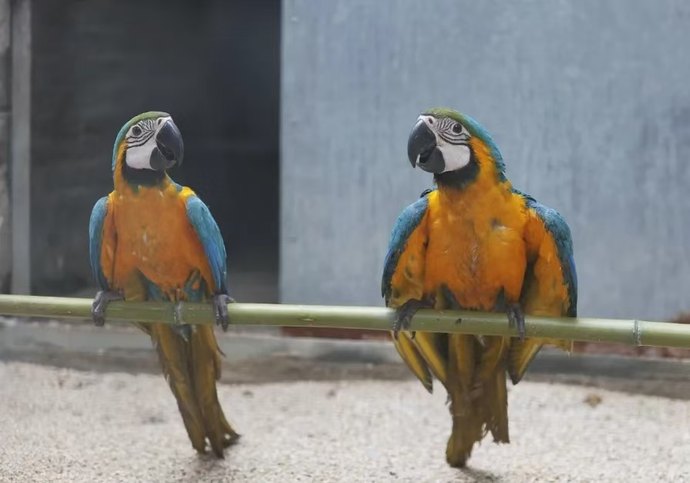 走進鄭州市動物園孵化室,一眼就能看到兩只漂亮的藍黃金剛鸚鵡在嗑瓜子,它們那漂亮的藍黃羽毛引人注目。這兩只金剛鸚鵡可是鄭州市動物園首次人工孵化育幼的。