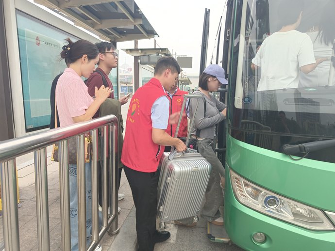 在火車站西廣場站點上,志愿者們分工明確,有的引導市民文明乘坐公交車,有的幫扶老弱病殘乘客上下車,有的幫助乘客提拿行李,同時提供各類應急物品等便民服務,通過志愿者的親情服務和熱心幫助,全面解決乘客出行之需,消除市民出行后顧之憂。